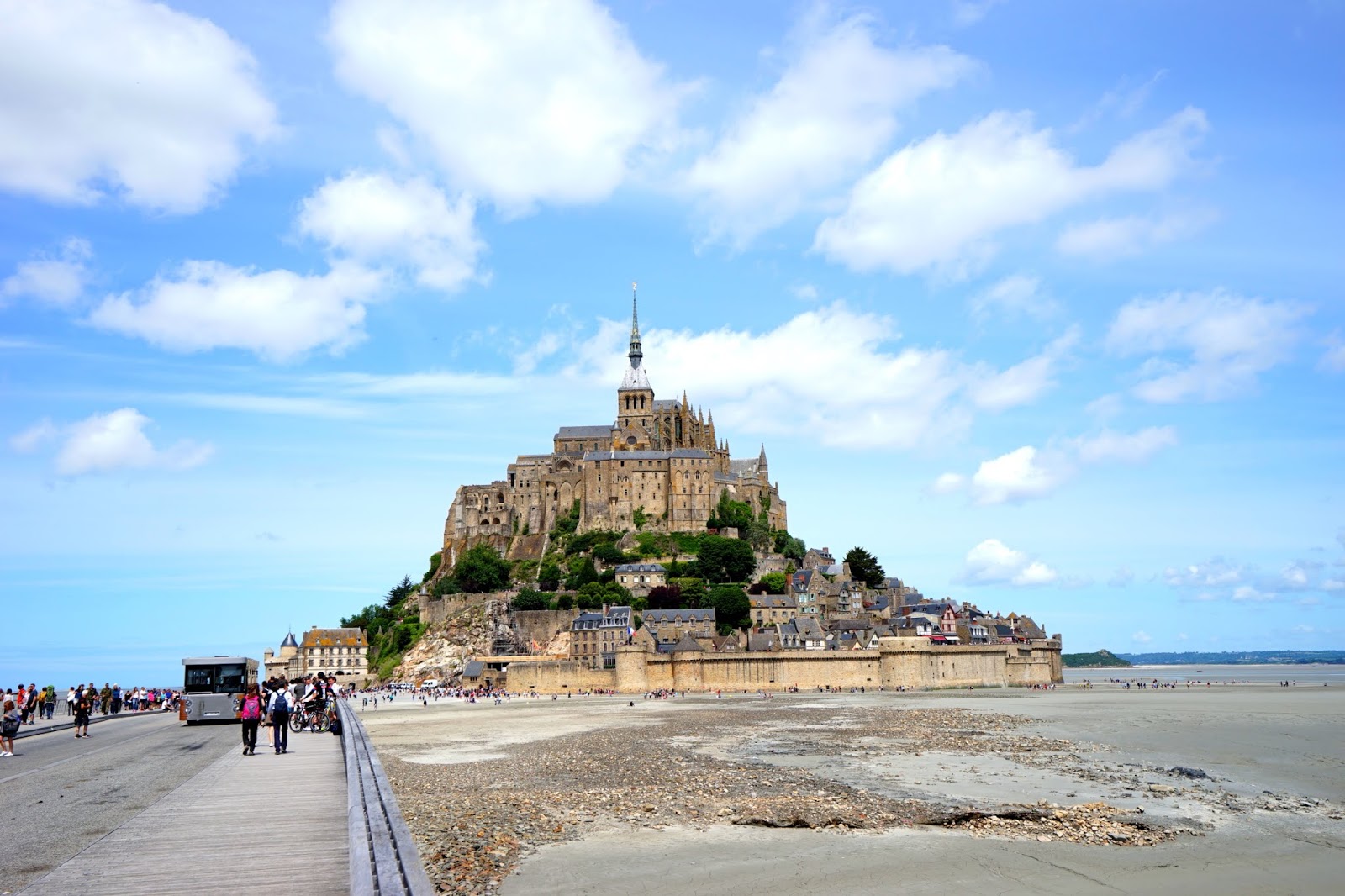 私が訪れた際は、Montparnasse駅を8:08に出発し10:25にRennesに到着。ホテルに荷物を預けたのち、11:45発のバスに乗り、13:00にMont Saint Michelに到着しました。